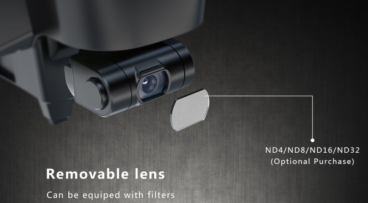Infatti il drone Hubsan Zino Pro, permette di registrare video a 4K, come la precedente persone, ma sulla parte anteriore della videocamera adesso si possono montare filtri ND Neutral Density (acquistabili separatamente).