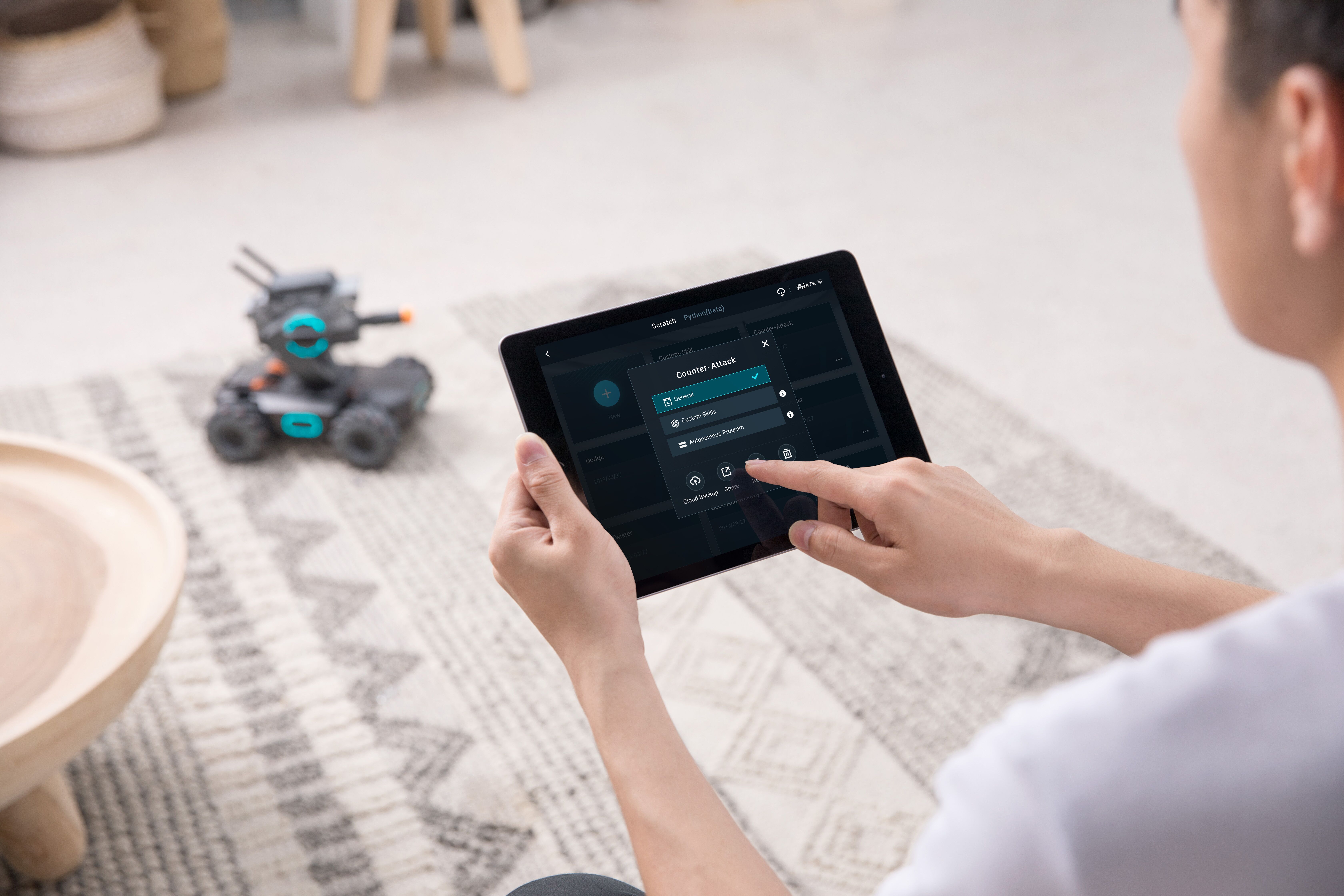Gli utenti in cerca di opzioni più avanzate possono utilizzare Scratch 3.0 o Python per programmare S1 con funzionalità esclusive, dal movimento per aumentarne l’efficienza alla torsione delle quattro ruote. L’opzione “Abilità programmate” porta l’apprendimento delle nozioni di programmazione nell’applicazione dell’ambiente reale. Programma e salva impostazioni e azioni personalizzate che ottimizzeranno le prestazioni di S1 per sferrare colpi decisivi sugli avversari, come ad esempio “Colpisci e via”, con cui S1 si gira e va al contrattacco dopo essere stato colpito alle spalle. Un’altra nuova funzionalità è la programmazione musicale con Scratch. Sono state aggiunte 36 note musicali al modulo di programmazione, consentendo agli utenti di scrivere musica originale e far suonare il robot.