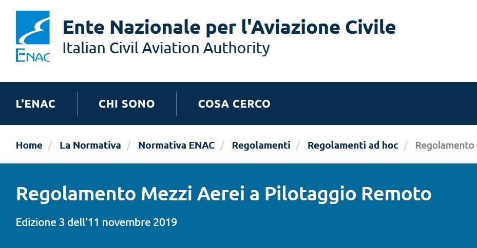 Fonte e link per il download del regolamento ENAC ed.3 del 11 novembre 2019.