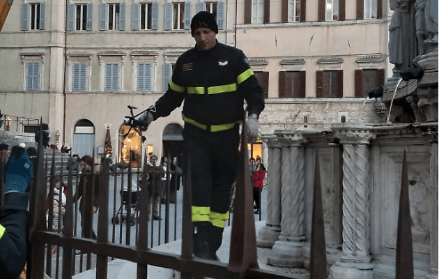 Drone cade sulla Fontana Maggiore a Perugia
