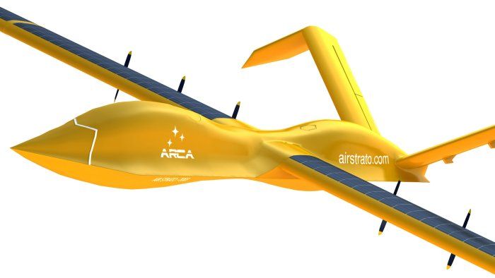 Un drone ad ala fissa con celle solari e batterie per operare in alta quota e per lungo tempo.